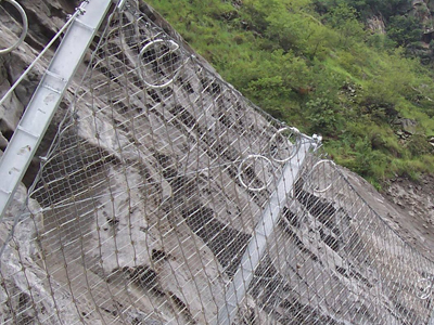 柔性防護網(wǎng)系統(tǒng)是現(xiàn)往常運用最多的邊坡防護體系,多用于山區(qū)景點、公路鐵路的兩端還有大型水電工程的邊坡防護,柔性防護網(wǎng)對山體崩塌落石的防護效果非常的好。